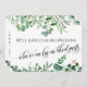 Este design apresenta o texto "Teremos Nosso Grande Casamento", seguido de "quando pudermos abraçar nossos amados convidados" em uma bela e giratória letra de roteiro. Acentuado com os arranjos de borda de eucalipto de aquarela, todas as camadas foram adicionadas separadamente e deixadas desbloqueadas para lhe dar o máximo controle de design. Use os campos modelo para adicionar seus detalhes pessoais e alterar qualquer um dos meus rascunhos para adequá-los às suas necessidades e situação. Se ainda não tiver definido uma data, poderá clicar para personalizar e remover as linhas desnecessárias. Se você tivesse minha ajuda para personalizar, por favor, não hesite em se aproximar. 119 //