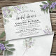 Este belo chá de panela é rústico e elegante. Apresenta uma design de aquarela pintada manualmente com folhas de eucalipto e ranhuras de flores lavandas em tons de verde-sábio e roxo claro. Ele tem todos os detalhes do chá em si, além de RSVP e informações do registro. É uma forma maravilhosa de celebrar a Noiva de Ser!