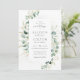 O convite de casamento russo apresenta uma aquarela de eucalipto, estrutura botânica verde e moderna escrita e fonte chic, elegante e romântica, excelente para casamento rústico moderno, casamento de jardim botânico e casamento de boho country. Veja todas as peças correspondentes na coleção abaixo.