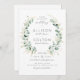 O convite de casamento russo apresenta cor d'água eucalipto, coroa verde botânica e moderna escrita e letra chic, elegante e romântico, excelente para casamento rústico moderno, casamento do jardim botânico e casamento do boho country. Veja todas as peças correspondentes na coleção abaixo.