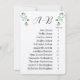 Alphabetical guest seating chart cards with subtle bright green eucalyptus sprigs. The alphabetical letters are listed at the top with the guests' names in alphabetical order below with their corresponding table number. For each card that you want to create, edit the card, then add it to your cart. Go back to the original product again, and edit your second card with names, then add it to your cart. Do this for each card that you require.