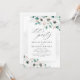 Moderna coloração aquática anêmona floral eucalipto verde floral e roteiro de "vamos partidário" sobre fundo de cinza de luz, com monograma de casal no verso, elegante e na moda, excelente para festa de casamento botânica rústica, festa de noivado, festa de renovação de votos ou outros eventos comemorativos. Ver todas as peças correspondentes na coleção