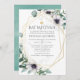 Trendy geométrica eucalipto verde e flores de papoila em tons pastéis bat mitzvah convite com moldura geométrica dourada e lavagem de hortelã de hortelã inversa.