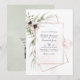 Convite de casamento que inclui flores anêmonas e folhas de eucalipto numa estrutura geométrica de cobre. Ideal para qualquer tema ou casamento de jardim. O código QR no verso direciona para o seu local de casamento onde o pessoas pode aprender mais e rsvp.