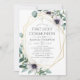 Verduras geométricas de eucalipto e flores de papoila em tons pastéis primeiro convite da comunhão com moldura geométrica dourada e lavagem de hortelã de hortelã inversa.