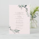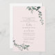 Convidado de casamento Elegante Blush. Verso branco. Ambos os pais listaram. Script Simples. Entre em contato com o designer para mudanças neste design (cor, pais, número de locais). "Deus de Deus". Eucalipto.