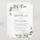 Convide amigos e família para honrar a noiva a ser com este Chá de panela com as folhas de cor d'água eucalipto. **LEIA ANTES DE ENCOMENDAR** Se você mudar a forma ou o tamanho ou escolher outro produto e o design for cortado ou não parecer direito na visualização, você pode usar o Serviço de Design ao Vivo para que alguém ajuste o layout para você, a menos que você se sinta confortável fazendo isso sozinho. Verifique também triplamente se há erros de ortografia ou informações incorretas antes de fazer seu pedido. Não há nenhuma verificação manual ou intervenção entre o posicionamento do pedido e a impressão; o que você vê na tela será impresso e enviado a você.
