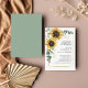 Crie um cartão moderno de Chá de panela de Script Floral de Girassol com este modelo giro com um belo buquê floral rústico com uma tipografia simples moderna. DICA: Cartões de suíte de casamento iguais, como RSVP, programas de casamento, banners, tapeçarias, etiquetas de presentes, placas e outras pegadas de casamento e guloseimas estão disponíveis na coleção abaixo com esta design.