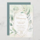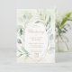 Um convite moderno e botânico, com folhas de eucalipto e verde em torno de uma falsa estrutura geométrica dourada. Dentro são seus detalhes de evento em tom dourado, sobre uma lavagem a aquarela pastel e a parte traseira é uma sombra de verde macio. Este convite elegante e rústico é neutro em termos de gênero e funciona para um batizado de menino ou menina.