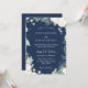 Este convite de casamento moderno de marinho de algodão eucalipto é perfeito para o seu casamento moderno. Este design apresenta um verde eucalipto com flancos brancos de algodão sobre um fundo azul-marinho escuro e um roteiro de caligrafia branca em um layout clássico tradicional moderno. Por favor, sinta-se à vontade para nos contactar com quaisquer perguntas sobre esta design.