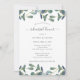 Esses simples e modernos convites de janto botânico de ensaio de casamento apresentam folhas verdes de cor aquática de eucalipto e folhagem em um fundo branco minimalista com moderno roteiro manuscrito.