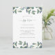 Esses simples e modernos bebezinhos neutros em relação ao gênero e veja os convites apresentam folhas verdes de folhagem de aquarela eucalipto em um fundo branco limpo com o moderno script manuscrito.