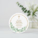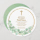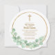 Elegante *nos primeiros convites de comunhão apresentam uma cruz falsa dourada, uma coroa de folhas de eucalipto e seus detalhes em letra chic. Perfeito para a primeira comunhão do seu filho, batismo ou batizar. Itens CORRESPONDENTES disponíveis na nossa coleção. *O tamanho redondo toma uma postagem extra - e-mail em um envelope de 5" x 7" para a postagem regular.