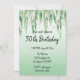 Personalize o estilo moderno da letra da caligrafia e crie o seu próprio convite de aniversário. O plano de fundo apresenta gotículas douradas falsas e folhas de cor-de-água penduradas de eucaplytus com galhos dourados. O ombre é branco a verde-minúsculo pálido para combinar com o design.