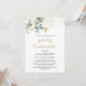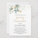 Verde neutro em relação ao gênero Primeiro Convite à Comunicação. Este design apresenta uma ilustração da folhagem de eucalipto e folhas de ouro em estilo aquarela com cruz falsa de ouro. Na parte superior da placa - esverdeado e confete de efeito do ouro.