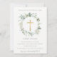 Convites Eucalyptus Dourado Cross Wreath Christening