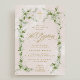 Convites Eucalyptus Dourado Cross Wreath Girl Baptism