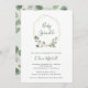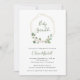 Este convite de aspersão de bebê na moda apresenta uma coroa de folhas verdes, de cor d'água eucalipto e uma falso estrutura geométrica de ouro sobre fundo branco. É neutro em termos de gênero tão perfeito para uma rapariga ou para um rapaz.
