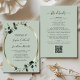Atualizado com Código QR Instantâneo - Metálico Dourado Eucalyptus Tudo em Um Convite de Casamento de Sage de Código QR... Nosso convite de casamento botânico luxo, de dois lados, apresenta uma estrutura oval metálica dourada embelezada com folhas de eucalipto abarrotadas de esmeraldas sobre um fundo verde-claro. A parte traseira do convite contém todos os detalhes que você normalmente veria em cartas separadas no pacote de casamento. Este convite de casamento ao estilo moderno foi concebido para ser elegante e consciente do orçamento... para não mencionar a poupança de tempo. No verso há também um modelo gráfico de código QR que você pode substituir por seu próprio código simplesmente digitando no URL do seu site de casamento... no modelo de personalização onde você também revisa o texto de exemplo com seus próprios detalhes.