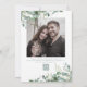 Este convite de casamento de eucalipto com aquarelas é mínimo e elegante. Emerald Green e Sage estão em tendências para Primavera, Verão e outono. O script simples é clássico. A parte de trás do convite apresenta a sua fotografia (que tem um filtro) juntamente com uma mensagem e um Código QR