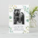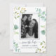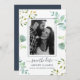 Um casamento de fotos simples e elegante salve o convite de data com design botânico verde de eucalipto em um fundo branco que você pode personalizar com sua foto de noivado. A parte traseira da placa é azul-marinho-chic. Simplesmente adicione seus próximos detalhes de casamento. Se precisar de ajuda ou produtos correspondentes, entre em contato conosco através da nossa loja. Estamos felizes em ajudá-lo a fazer seu casamento o dia mais bonito! Desenvolvido exclusivamente para você pelo Happy Dolphin Studio.