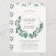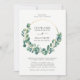 Estes convites de casamento apresentam um design de coroa aquática com folhas de eucalipto e borda circular de ouro falso. Personalize com seu texto. Material de papelaria correspondente também disponível.
