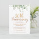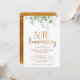 Eucalyptus Foliage Dourado 50º Aniversário Convite moderno para 50º aniversário de casamento, com uma adorável folhagem de eucalipto ou verde no topo do design e um falso título de caligrafia de folha de ouro. O verso do convite é também uma imagem falsa de folha de ouro. Esta design do 50º aniversário de casamento é uma forma adorável de convidar convidados para uma próxima comemoração do 50º aniversário de casamento.