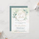 Convite moderno para chá de fraldas com dentro de "oh baby" de uma estrutura geométrica cercada por folhas de eucalipto e verde com uma dica de azul. Abaixo estão os detalhes de seu evento em verde escuro e o nome da futura mãe em um elegante roteiro em tons de ouro, sobre uma lavagem a aquarela pastel com manchas de brilho de ouro falso. A parte de trás é uma sombra correspondente de verde azul macio. Este convite rústico é excelente de um chá de fraldas de temas botânicos e o design neutro de gênero funciona para um garoto ou uma garota.
