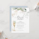 Elegante e divertido com este convite para o almoço de champanhe brunch & bubble Chá de panela desenhado com galhos de uísque e eucalipto macio dourados e um doce azul empoeirado na parte de trás do cartão. Personalize facilmente com o nome da noiva e outras informações importantes.
