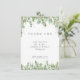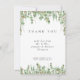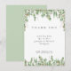 This thank you card features green watercolor and gold eucalyptus leaves and branches. Please note that the gold is simulated. The copy is fully editable. You can also change the font. This tag has matching invitations, envelopes, labels and stamps. Make all your wedding items coordinate!