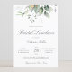 Belo convite para o almoço de noiva com aquarela eucalipto e folhas de ouro com caligrafia elegante.