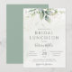 Belo convite para o almoço de noiva com aquarela eucalipto e folhas de ouro.
