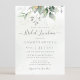Belo convite para o almoço de noiva com aquarela eucalipto e folhas de ouro.