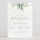 Belo convite para o almoço de noiva com aquarela eucalipto e folhas de ouro com caligrafia moderna manuscrita.