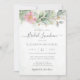 Belo convite para o almoço de noiva, com cor de água floral rosa eucalipto e folhas de ouro.