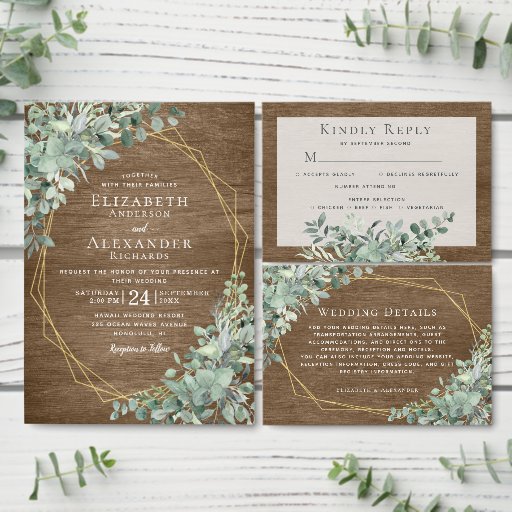 Rustic Wood Eucalyptus Greenery Geometric WeddingCriado por Connie R.