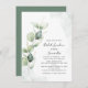 Chá de panela de aquarela Eucalyptus Script Floral Invitation com um moderno design botânico minimalista em fundo branco com tipografia popular, você pode facilmente editar DICA: Veja abaixo outros itens de eventos de preparação de casamento e pré-casamento, incluindo convites de chá de panela, cartas de agradecimento, etiquetas de champanhe, etc. para este design!