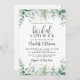 Simple Greenery Boho Bridal Shower Invitation. Perfect for spring through autumn celebrations, this minimalist design features a clean white background on both the front and back for a fresh, timeless look. Soft watercolor eucalyptus leaves and delicate greenery frame the invitation along the top and bottom, adding a natural, airy feel that’s elegant, modern, and subtly romantic.