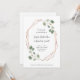 Este convite de casamento minimalista e moderno apresenta folhas e folhagem romântica de cor aquática de eucalipto em um falso quadro geométrico de rosa dourado. Há um espaço no fundo com a opção de adicionar seu site de casamento. Um simples, mas espantoso olhar para o seu casamento moderno.