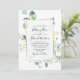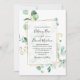 Este convite de caligrafia apresenta um quadro branco dourado adornado com uma folhagem verde de eucalipto com aquarela, foi emparelhado com uma letra de caligrafia branca e uma letra serif clássica, que pode ser alterada conforme necessário. Para fazer alterações avançadas, vá para a opção "Clique para personalizar mais" em Personalizar este modelo.