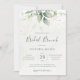 Bonito convite para brunch bridal com aquarela eucalipto e folhas de ouro com caligrafia moderna manuscrita.