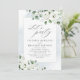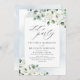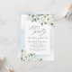 Moderna cor aquática branca floral de eucalipto verde floral moderno e roteiro de "vamos partidário" em fundo azul empoeirado, com monograma de casal no verso, elegante e na moda, excelente para festa de casamento botânica rústica, festa de noivado, festa de renovação de votos ou outros eventos comemorativos. Ver todas as peças correspondentes na coleção