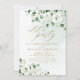 Moderna cor aquática branca floral de eucalipto verde floral e rotinas coloridas de ouro e roteiro de "vamos" em fundo verde poeirento, com monograma de casal no verso, elegante e na moda, excelente para festa de casamento botânica russa, festa de noivado, festa de renovação de votos ou outros eventos comemorativos. Ver todas as peças correspondentes na coleção