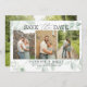 Anuncie seu dia especial em estilo com este Eucalyptus Greenery Salve o Cartão de Data! Apresentando um design verde eterno e espaço para até três fotos, este cartão combina elegantemente elegância natural com um toque pessoal. Este cartão de identidade é perfeito para casais que querem compartilhar sua história de amor com um design pessoal e rico em fotos. Seja impresso ou enviado digitalmente, é uma bela maneira de deixar seus hóspedes saberem marcar seus calendários! Crie uma impressão duradoura com este espantoso eucalipto verde salve o cartão de data, apresentando seus momentos favoritos e um toque de beleza natural.