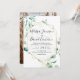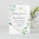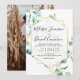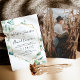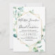 O Convite Greenery Wedding, com folha de cor verde-d-água, pintada à mão, eucalipto, acentuado por uma estrutura geométrica de ouro branco moderna, foi emparelhado com uma escrita química e uma letra san serif limpa. Opção para adicionar sua própria foto no verso. Personalize-o conforme necessário e torne-o seu!