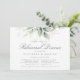 Belo convite de janto de ensaio, com aquarela eucalipto e folhas de ouro.