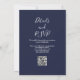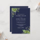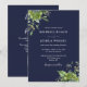 Este elegante convite de casamento azul de marinho botânico verde-eucalipto pode ser personalizado com suas informações em tipografia quic com seu website de casamento Código QR no verso. Projetado por Thisnotme©