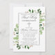 O Primeiro Convite à Comunidade Elegante Moderno inclui folhas de cor aquosa de eucalipto e outras lindas folhagens botânicas verdes. Silver Cross.