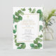 Apresentando a folhagem de eucalipto verde e um elegante crucifixo de ouro, este primeiro convite de comunhão sagrado chic pode ser personalizado com suas informações especiais. Projetado por Thisnotme©