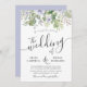 Este é um convite bonito e boho para o casamento da caligrafia, com eucalipto e flores roxas. Fácil personalizar o texto para criar algo realmente exclusivo.